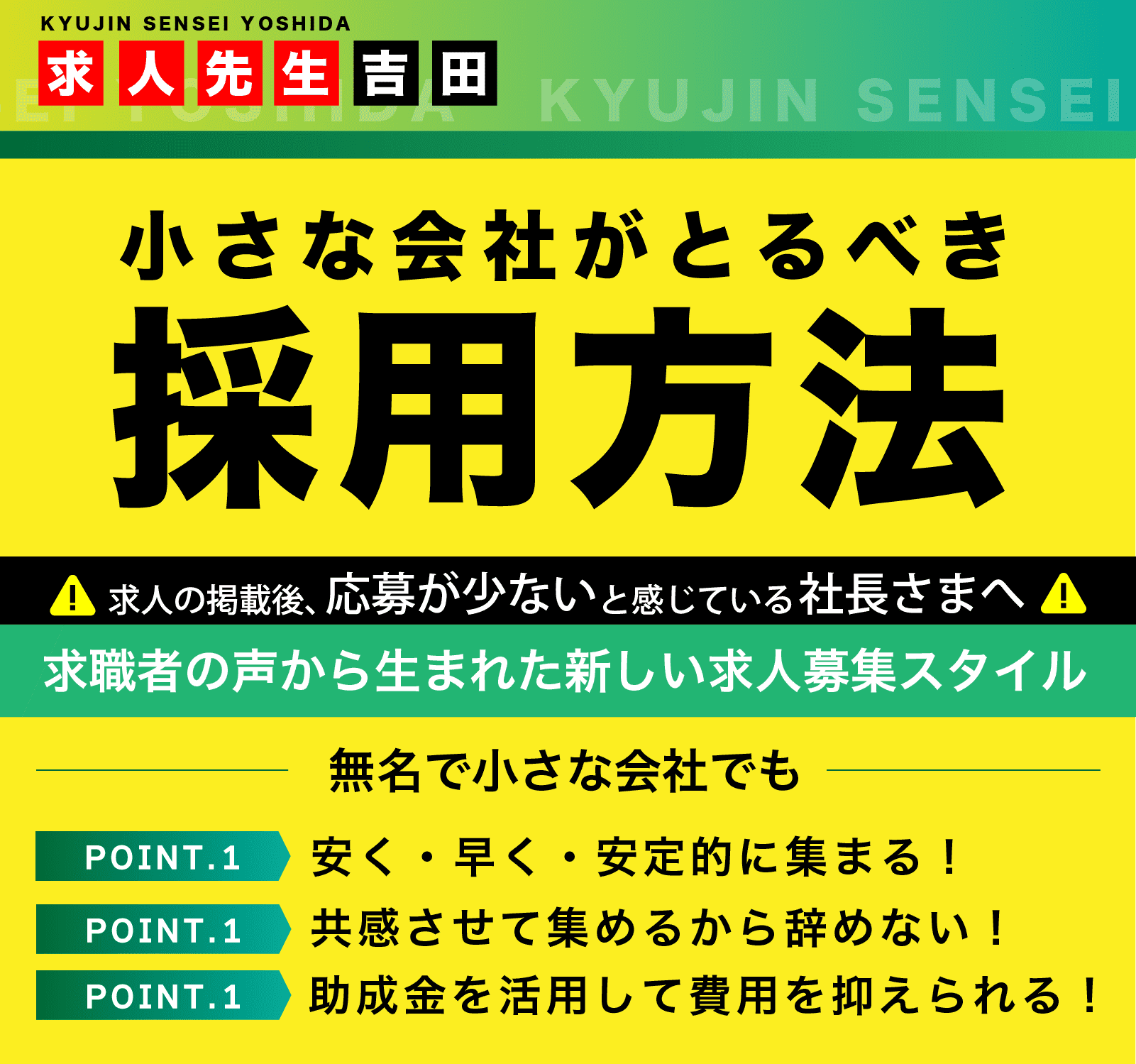 | ⑤小さな会社がとるべき採用手法とは? | 求人広告費が会社を潰す!小さな会社が最も避けるべき求人広告とは? |